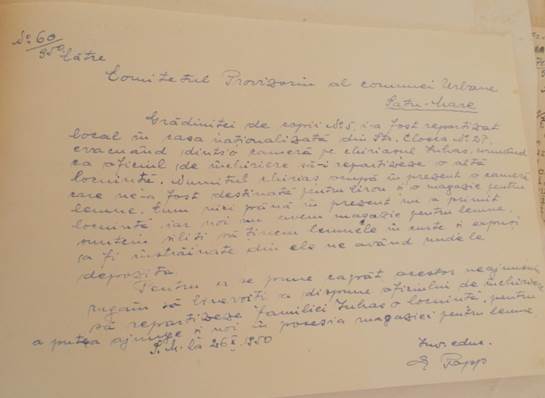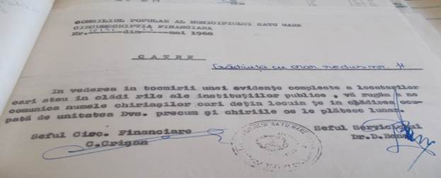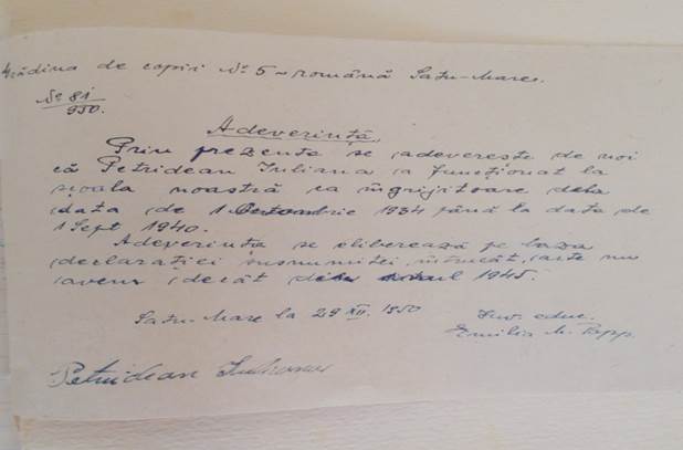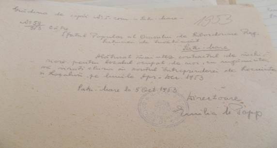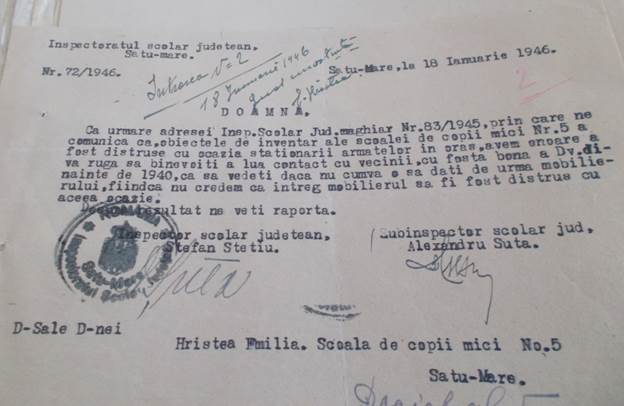Inspectorul metodist Pintea Cornelia subliniază faptul că este absolut necesar să se elibereze de către Sfatul Popular și restul camerelor pentru a amenaja încă o sală de clasă și o sală pentru material didactic.