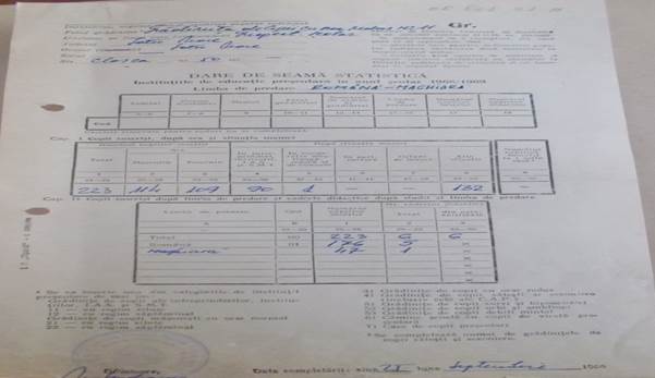 Darea de seamă statistică din anul școlar 1968-1969 ne arată că numărul copiilor înscriși la cele două secții ( română, maghiară) a fost de 223.